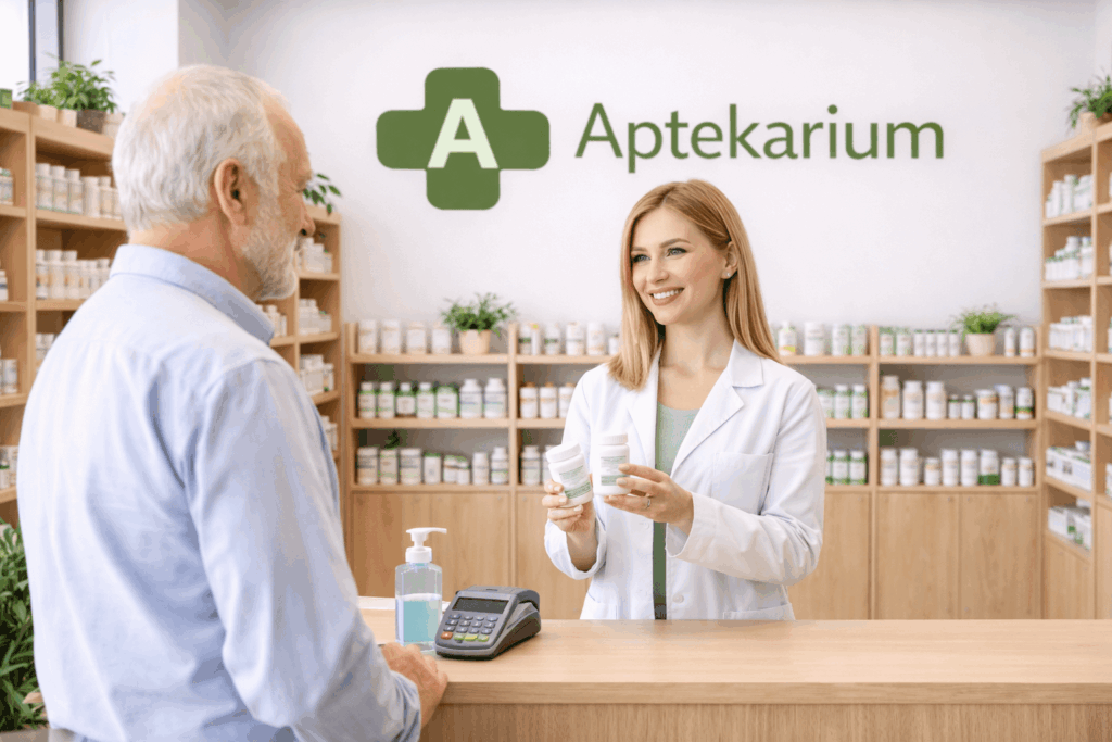 Nie prowadzimy sprzedaży stacjonarnej ani działalności aptecznej – Aptekarium funkcjonuje wyłącznie jako sklep internetowy z suplementami diety i produktami wellness.